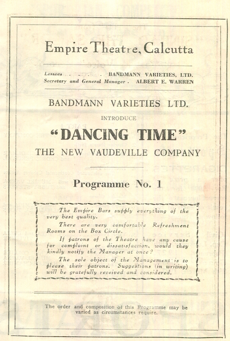 India Bombay Entertainment Empire Theater Program 1927 Front