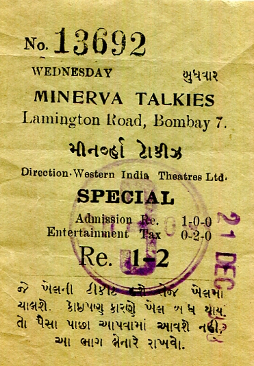 India Bombay Entertainment Minerva Talkies Ticket 1938