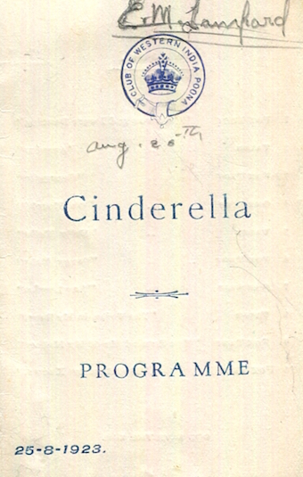 India Entertainment Poona Ball Club Of Western India Dance Card Cinderella 1923 Front