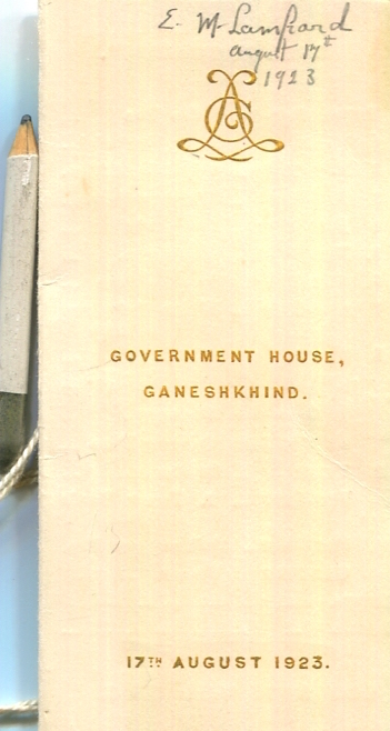 India Entertainment Poona Ball Government House Dance Card 1923 Front