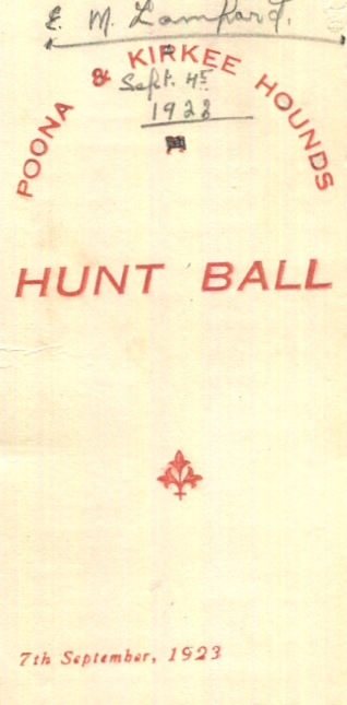 India Entertainment Poona Kirkee Hounds Hunt Ball Dance Card 1923 Front