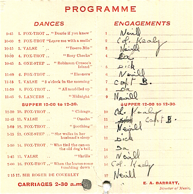 India Entertainment Poona Ball Government House Dance Card 1923 Inside