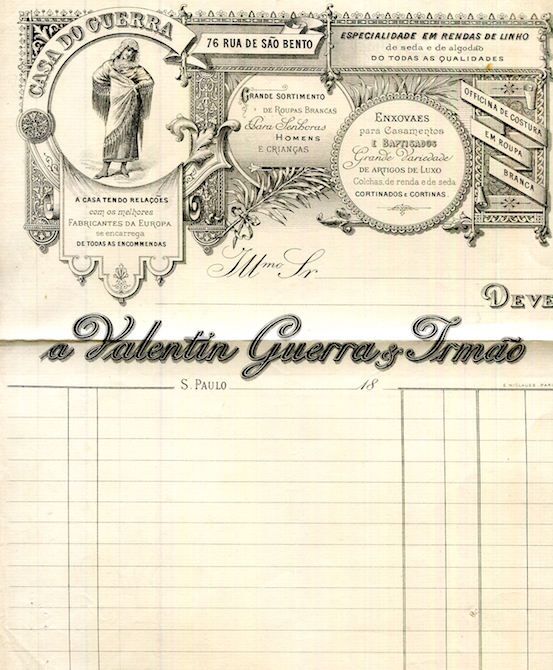 Brazil Sao Paulo Commerce Receipt Casa Do Guerra 1880