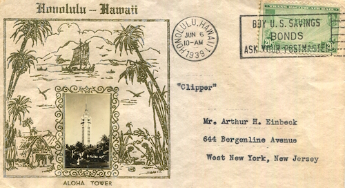 Hawaii Transport Honolulu Clipper Envelope 1939