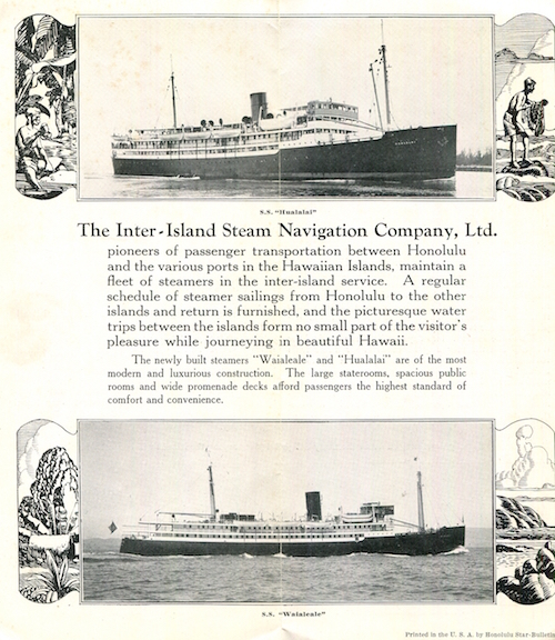 Hawaii Transport Steamship Inter-Island Steam Navigation Leaflet 1921-1