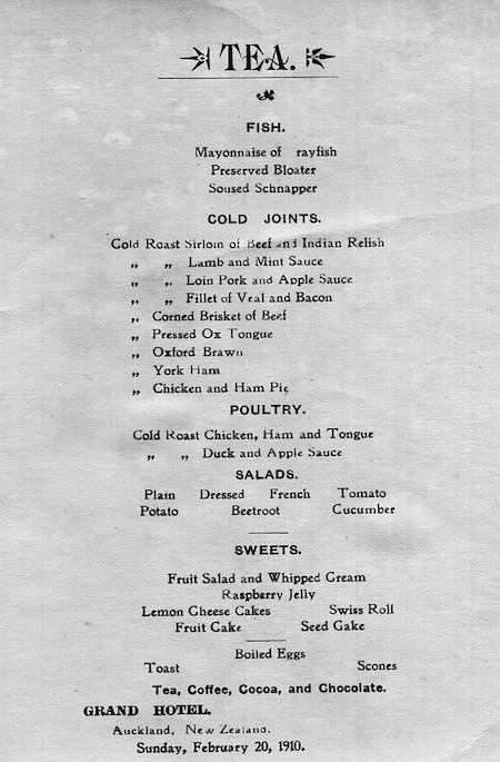New Zealand Auckland Hotel Grand Hotel Tea Menu 1906