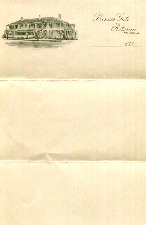 New Zealand Rotorua Hotel Princes Gate Stationery 1938