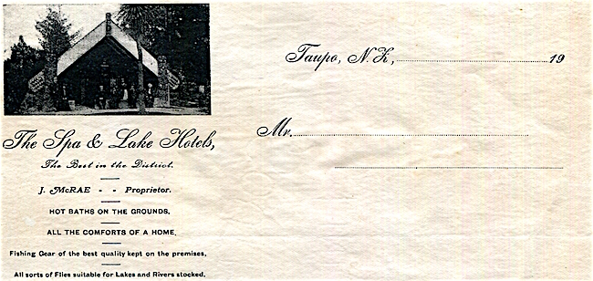 New Zealand Taupo Hotel The Spa Lake Billhead 1910