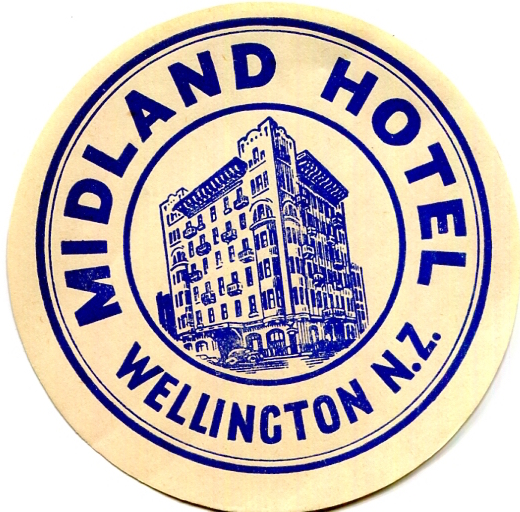New Zealand Wellington Hotel Midland Luggage Label 1933