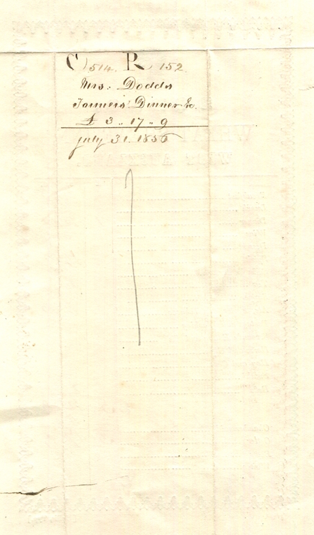 New Zealand West Auckland Hotel Wheat Sheaf Inn Receipt 1856 Back