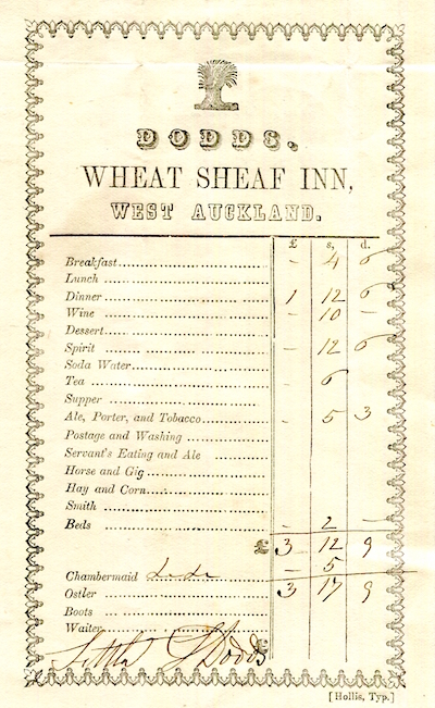 New Zealand West Auckland Hotel Wheat Sheaf Inn Receipt 1856 Front
