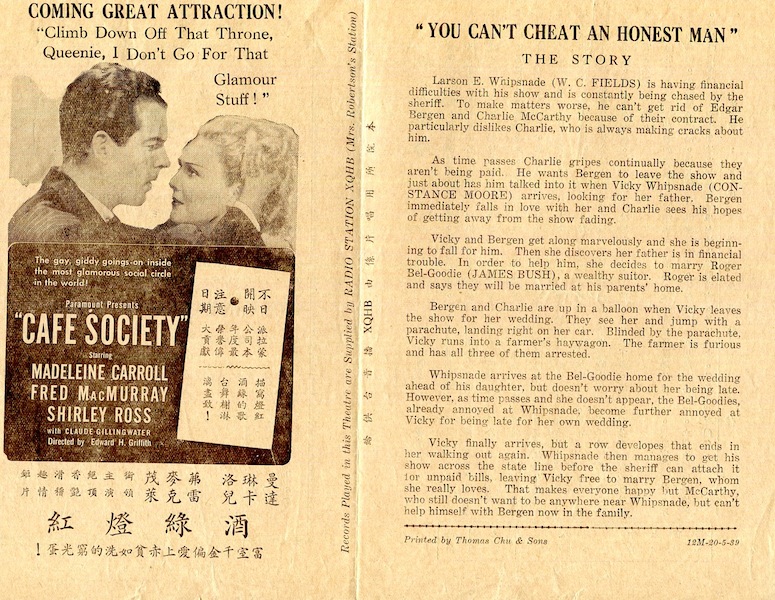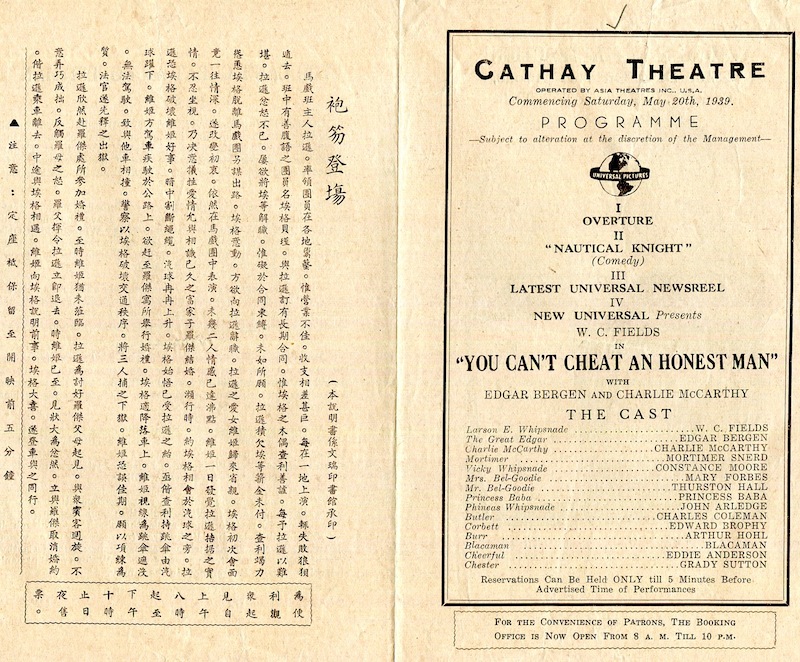 Shanghai Entertainment Cathay Theatre Program 1939 Side One