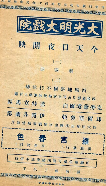 Shanghai Entertainment Grand Theatre Program 1938 Back