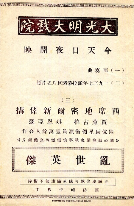 Shanghai Entertainment Cathay Theatre Program 1937-2