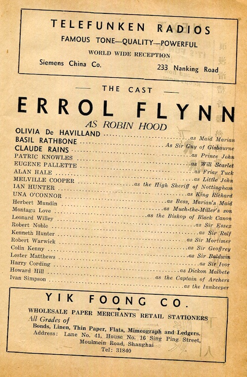 Shanghai Entertainment Cathay Theatre Program 1939 Side Two