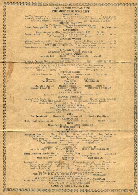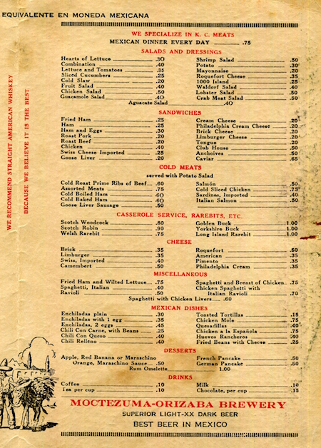 Mexico Juarez Restaurant Mint Cafe Menu 1928 Inside 1