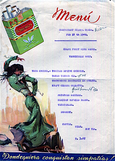 Mexico Cenuguvac Restaurant Sierra Gorda Menu 1942