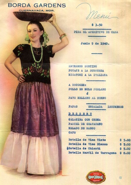 Mexico Cuernavaca Restaurant Borda Gardens Menu 1940