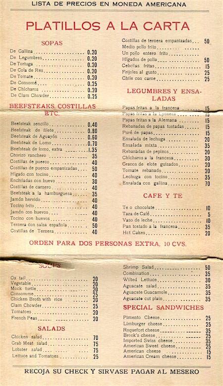 Mexico Juarez Restaurant Chee You Cafe Menu 1922 Inside 1