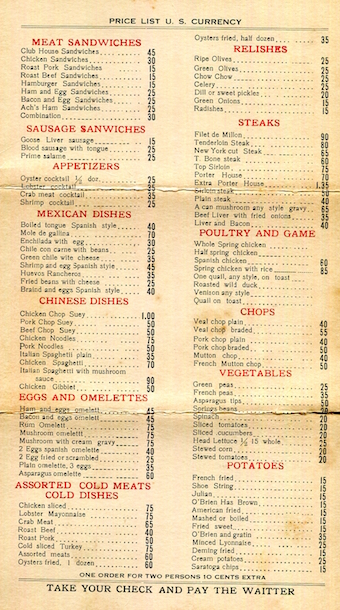 Mexico Juarez Restaurant Chee You Cafe Menu 1922 Inside 2