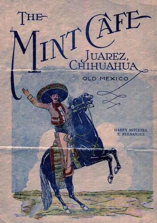 Mexico Juarez Restaurant Mint Cafe Menu 1928 Front