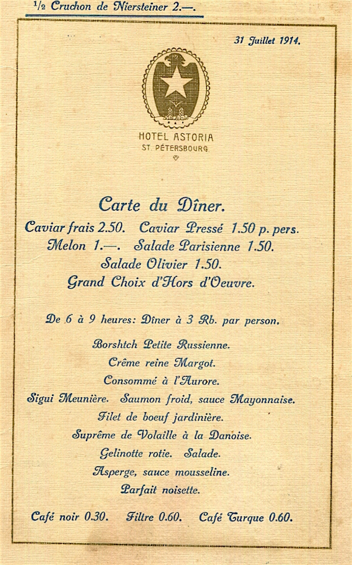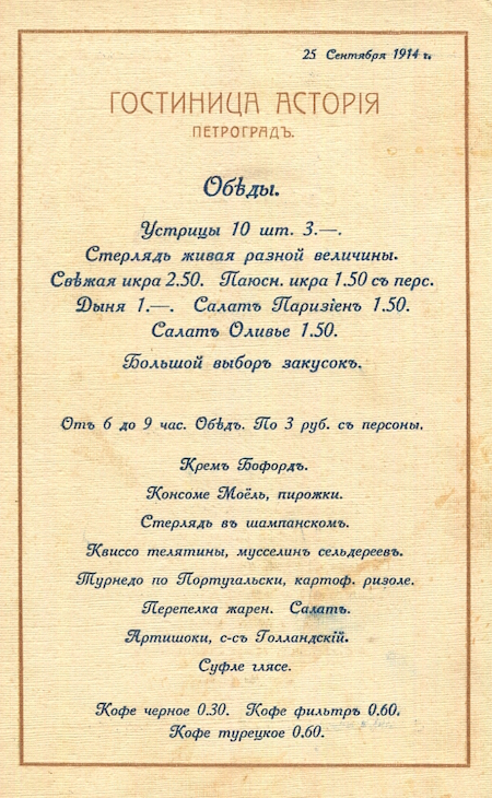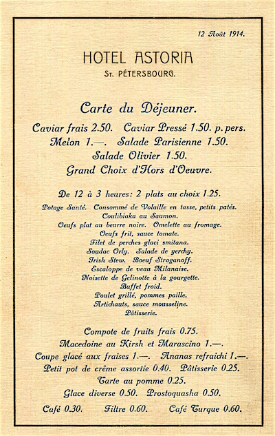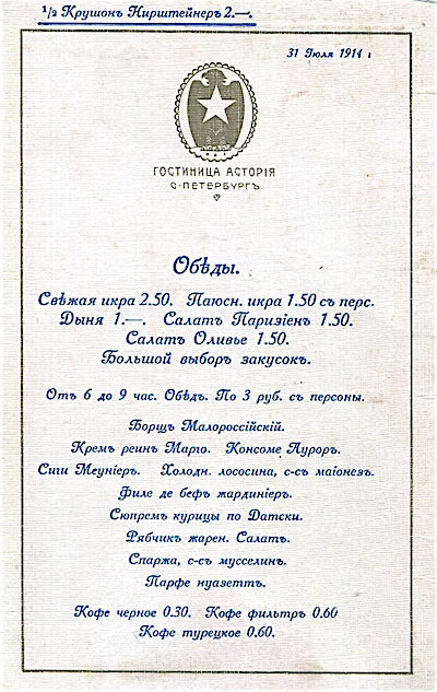 Russia St Petersburg Hotel Astoria Menu 1914 3 Front