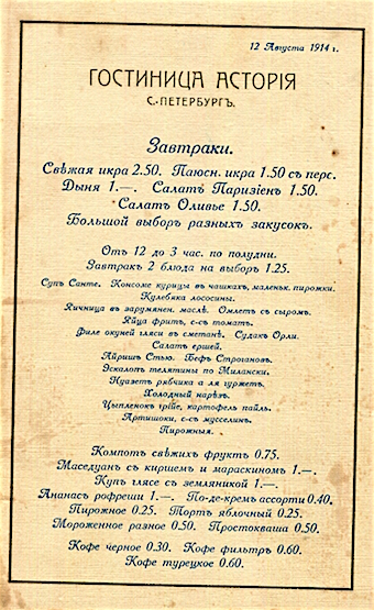 Russia St Petersburg Hotel Astoria Menu 1914 2 Front