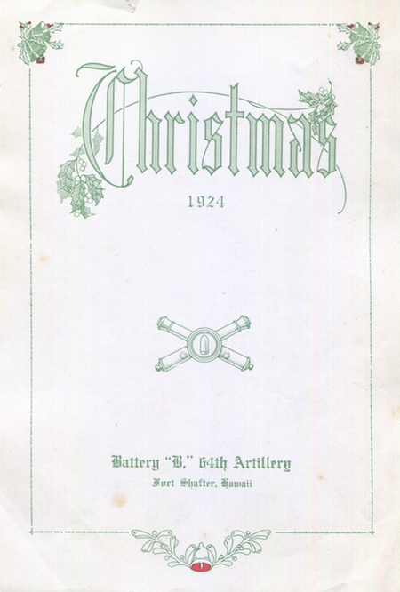 Hawaii Menu Fort Shafter Battery B 64th Artillary Christmas 1924 Front