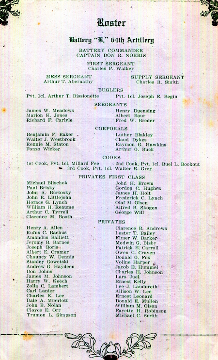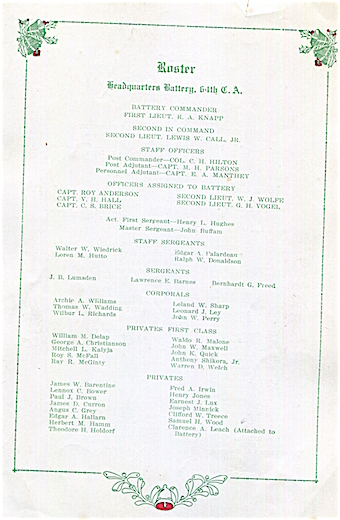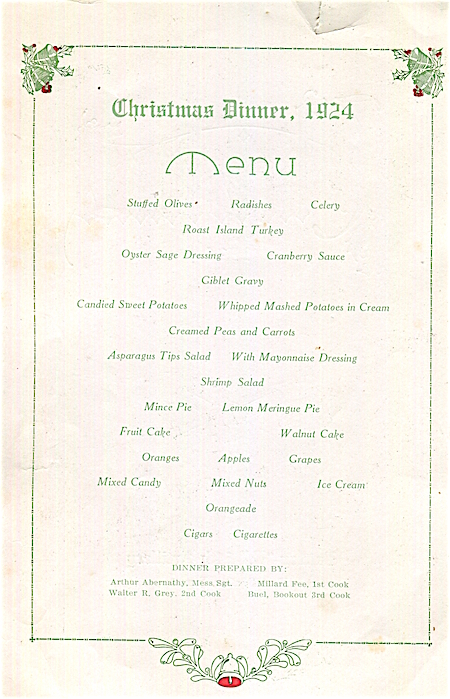 Hawaii Menu Fort Shafter Battery B 64th Artillary Christmas 1924 Inside 4