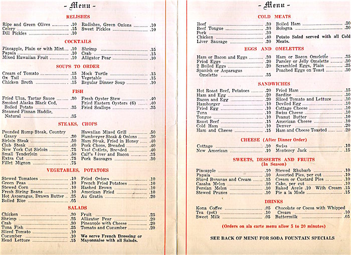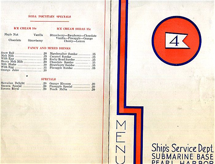 Hawaii Menu USN Ships Service Dept Pearl Harbor 1940 Inside