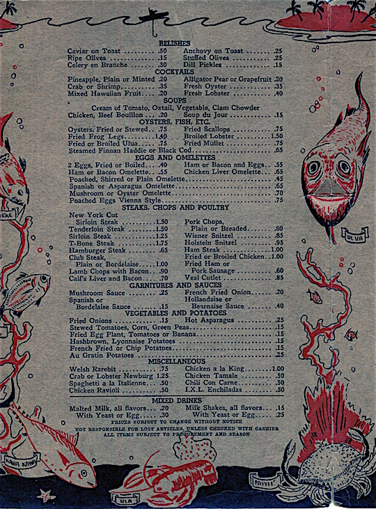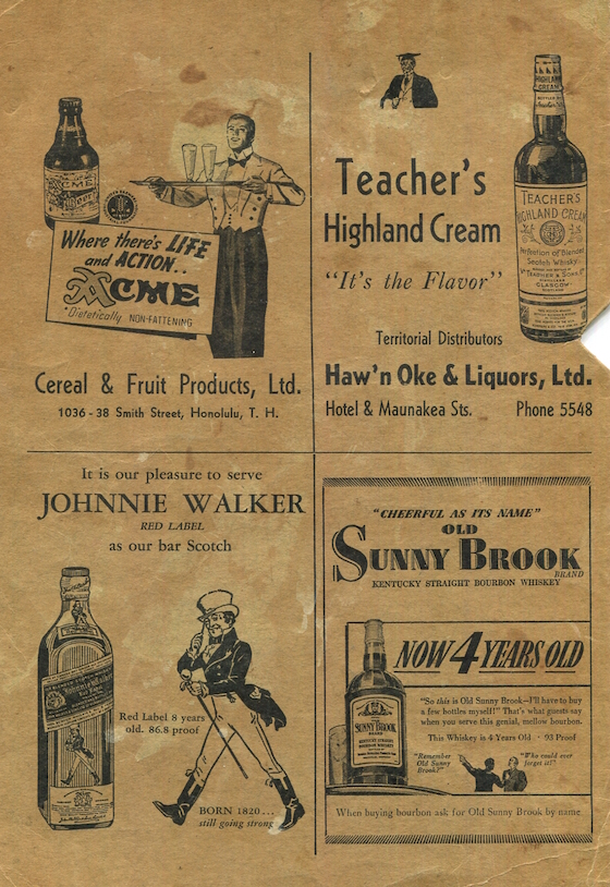 Hawaii Honolulu Restaurant Waikiki Tavern Menu 1943 Inside 1