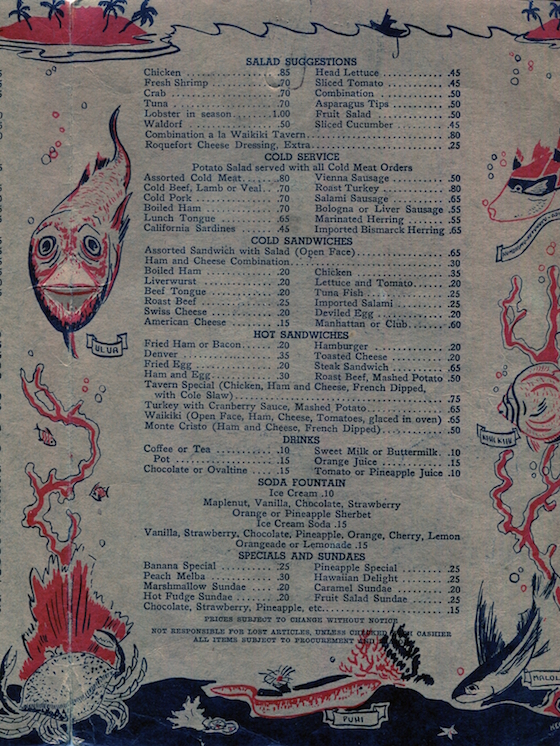 Hawaii Honolulu Restaurant Waikiki Tavern Menu 1943 Inside 3