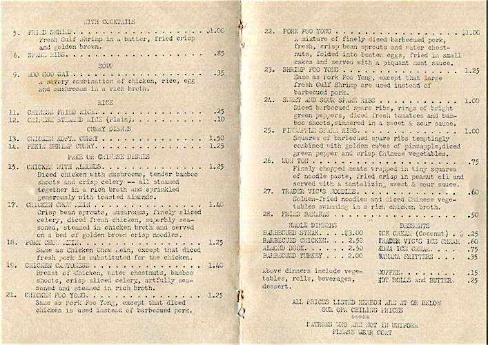 Hawaii Restaurant Trader Vics Chow Menu 1944 Inside