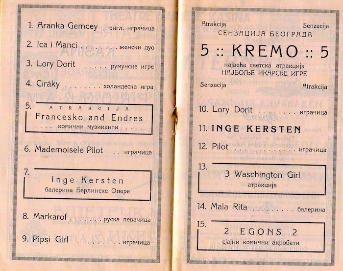 Yugoslavia Belgrade Entertainment Theater Variete Kasina Program 1924 Inside