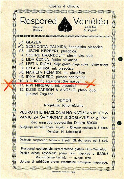 Yugoslavia Zagreb Entertainment Pik Variete Program 1925 Front
