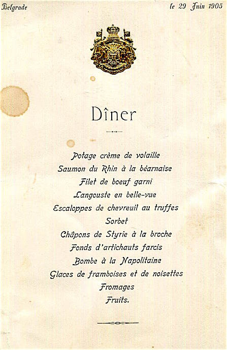 Yugoslavia Belgrade Royalty Royal Palace Royal Dinner Menu 1905 1