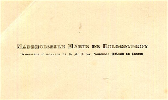 Yugoslavia Belgrade Royalty Visiting Card Marie De Bologovskoy Princess 1905