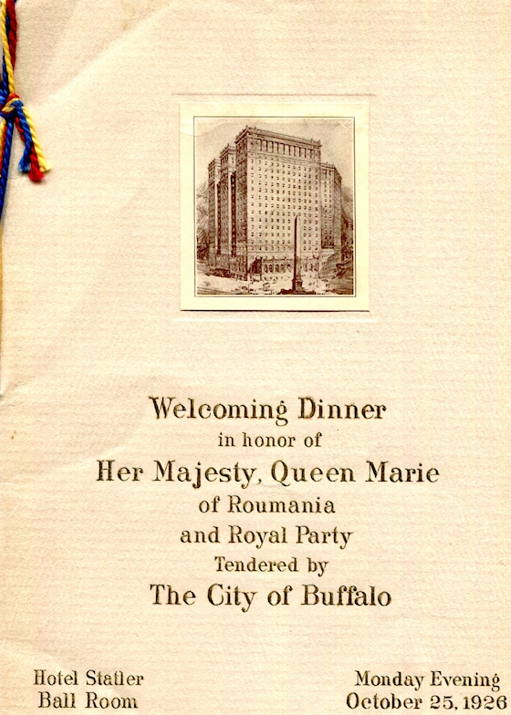 USA New York Buffalo Hotel Statler Queen Marie Menu 1926 Front copy