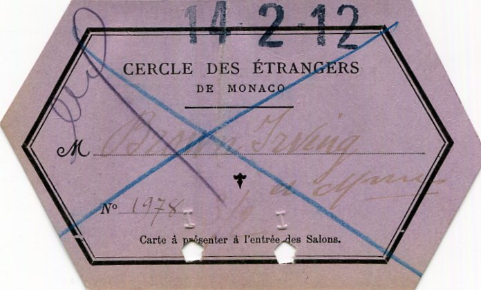 Monaco Monte Carlo Entertainment Casino Entry Card 1912 Side One
