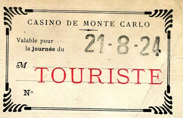 Monaco Monte Carlo Entertainment Casino Entry Card 1924 Side One