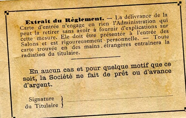 Monaco Monte Carlo Entertainment Casino Entry Card 1911-1912 Side Two