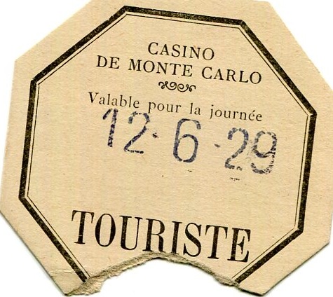 Monaco Monte Carlo Entertainment Casino Entry Ticket 1929