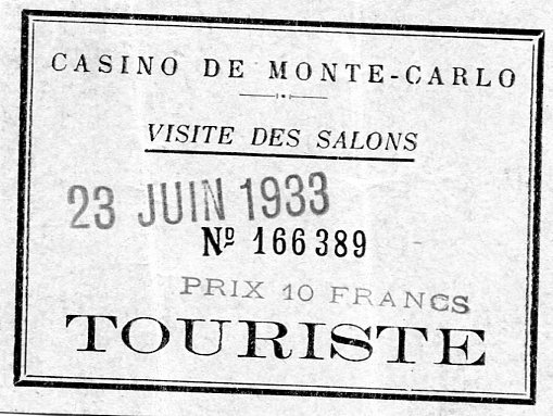 Monaco Monte Carlo Entertainment Casino Entry Ticket 1933