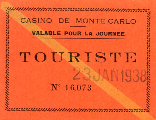 Monaco Monte Carlo Entertainment Casino Entry Ticket 1938
