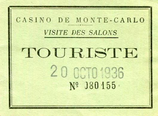 Monaco Monte Carlo Entertainment Casino Entry Ticket 1939