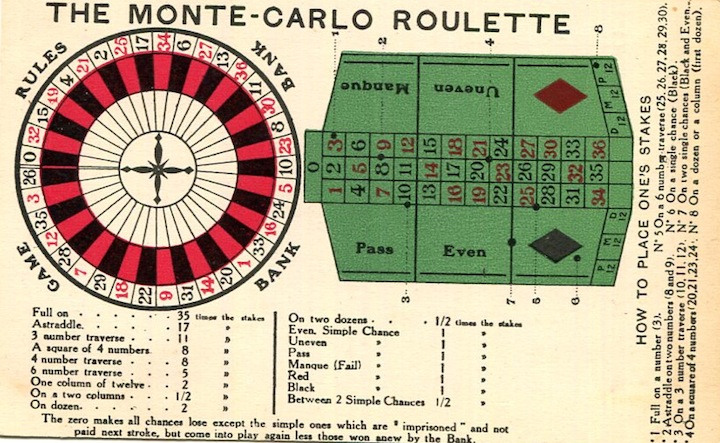 Monaco Monte Carlo Entertainment Casino Roulette Guide 1924 Back