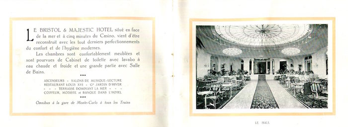 Monaco Monte Carlo Hotel Bristil Majestic Menu 1929 Inside