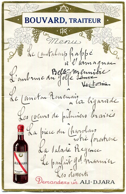 Algeria Algiers Restaurant Bouvard Traiteur Menu 1930