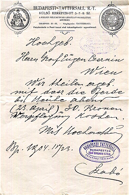 Hungary Budapest Commerce Budapesti Tattersall Receipt 1904