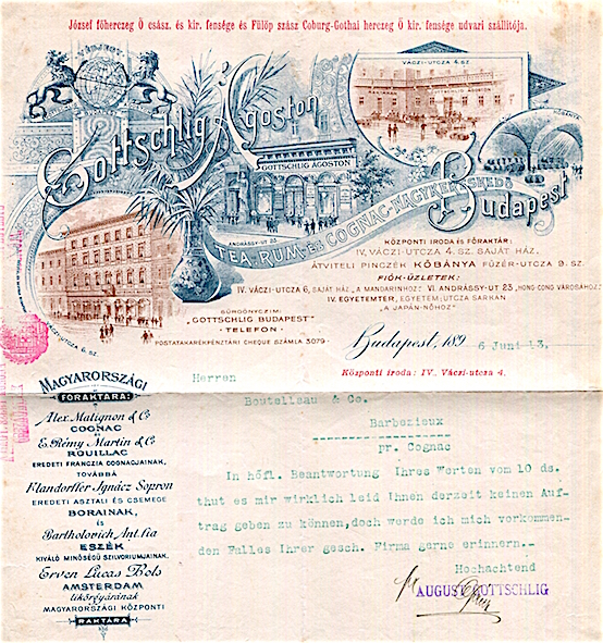 Hungary Budapest Commerce Gottschlig Agoston Letter Tea Rum Cognac 1890